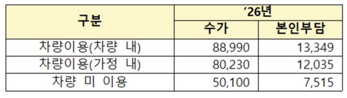 ※ 방문목욕 급여비용은 주 1회 산정하며 2인 이상의 요양보호사가 60분 이상 서비스를 제공한 경우에 산정하고, 소요시간이 40분 이상 60분 미만인 경우에는 해당 급여비용의 80%를 산정함